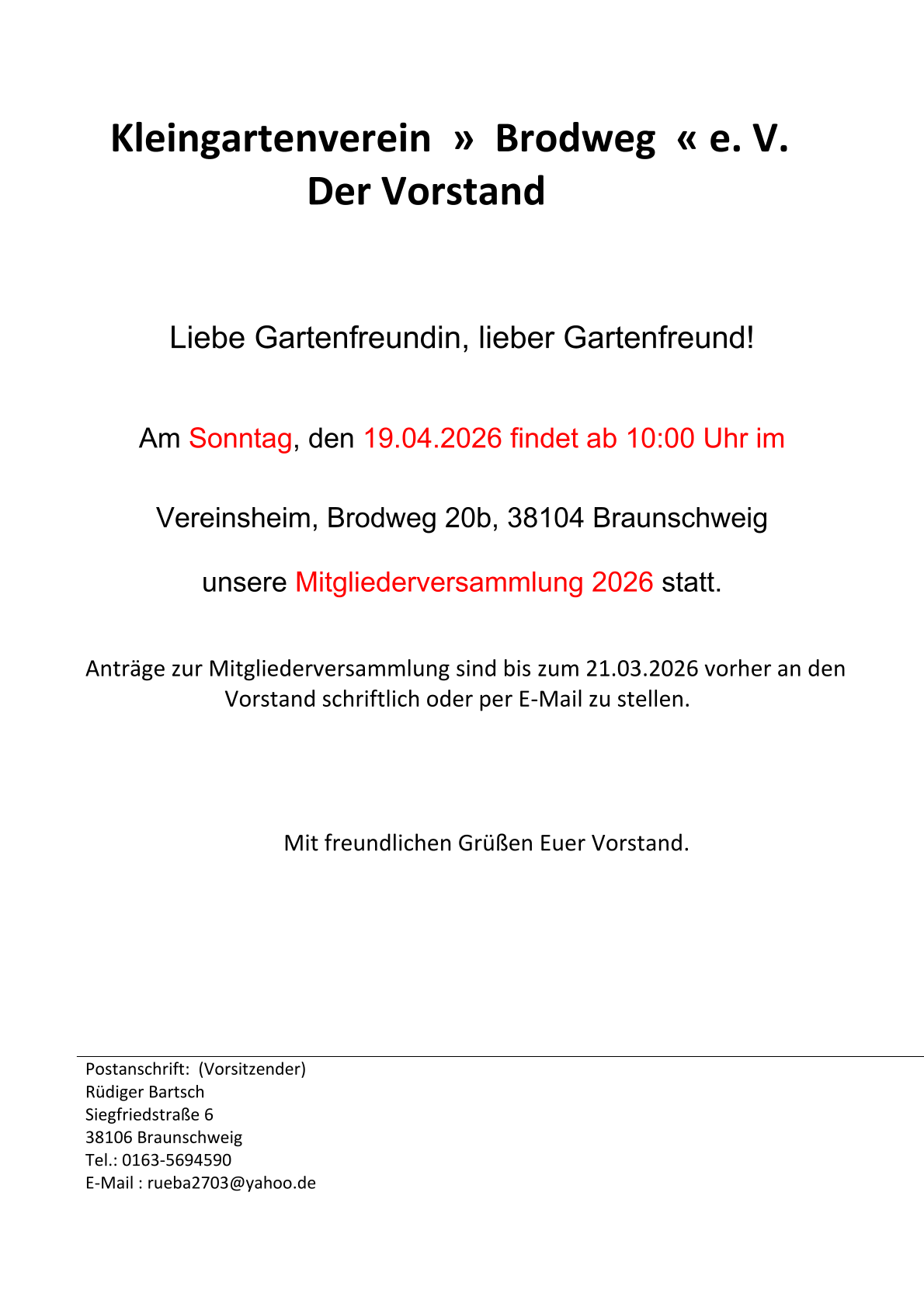 Einladung aus dem Verein Mastbruch